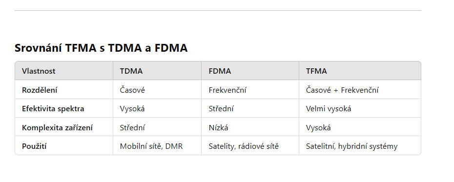 - Lepší životnost baterie díky TDMA (rádio vysílá pouze během svého časového slotu).
