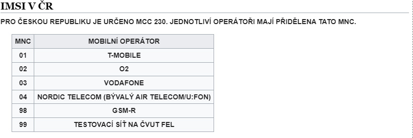 IMSI JE V SOULADU SE STANDARDEM E.212 MEZINÁRODNÍ TELEKOMUNIKAČNÍ UNIE (ITU).