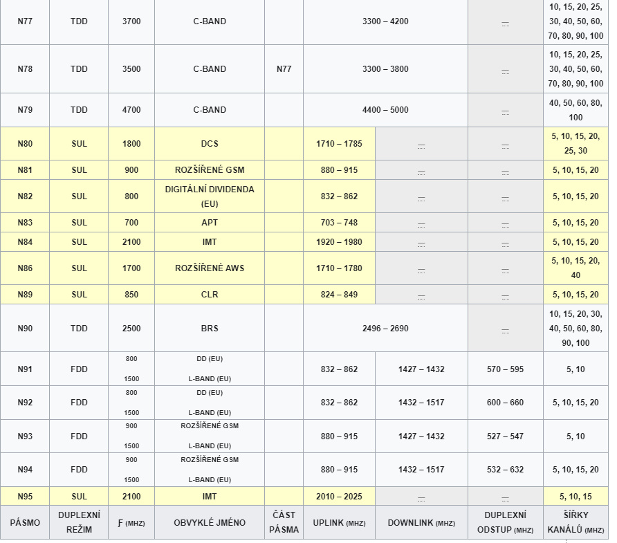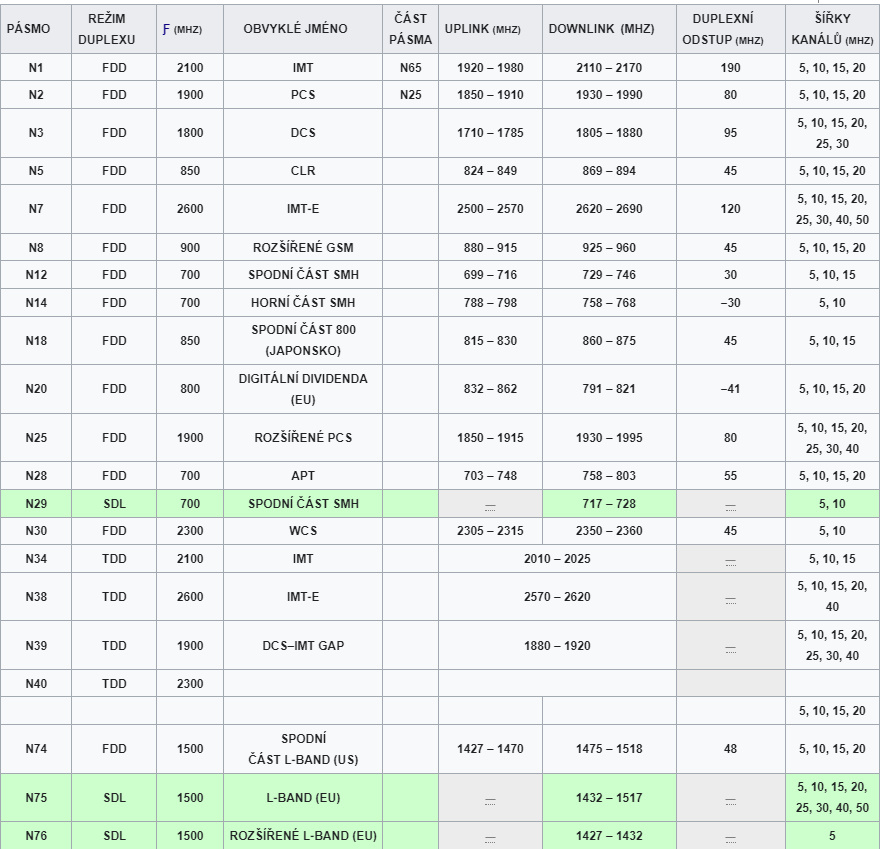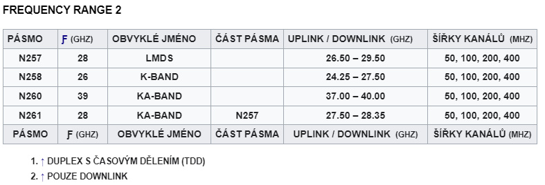 KMITOČTOVÁ PÁSMA 5G NR